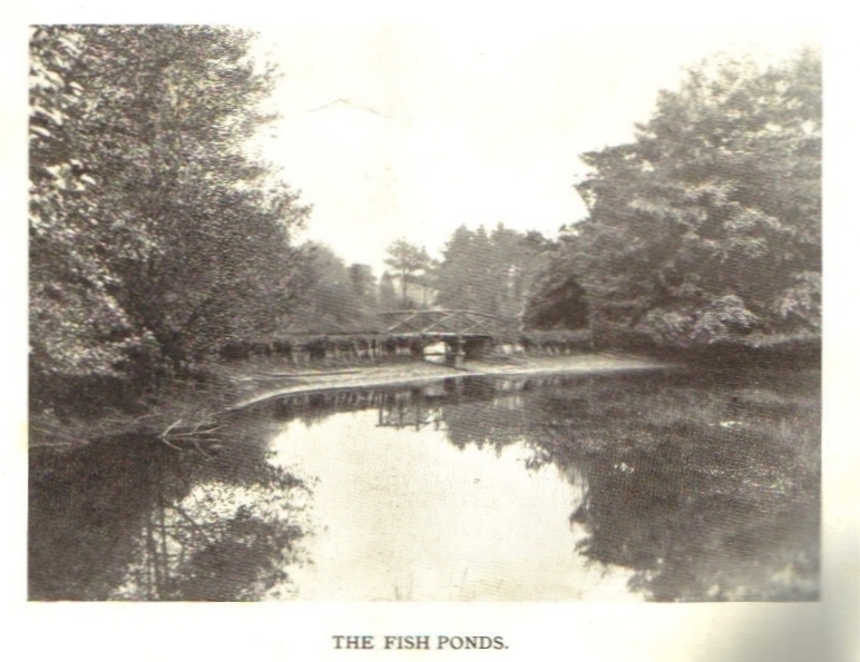 Behind the house down across the meadow, Mr Scaramanga created perhaps the most ambitious of his horticultural projects, a chain of five large lakes occupying about three acres alongside the railway line from East Grinstead to Crawley. These fish ponds as they were called, would have been a wonderful sight from the passing carriage windows, with their chain of waterfalls, and the masses of glorious banked rhododendrons and azaleas in bloom each spring. The uppermost lake incidentally, has been preserved and is now the Crawley Down Village Pond, enthusiastically and expertly tended by volunteers from the Pond Environmental Group.